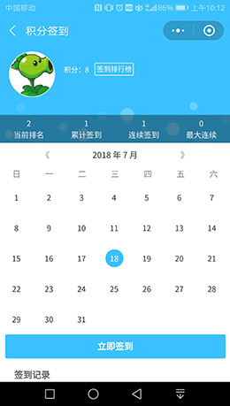 用户登陆商家小程序进行每日签到,获取相应积分。